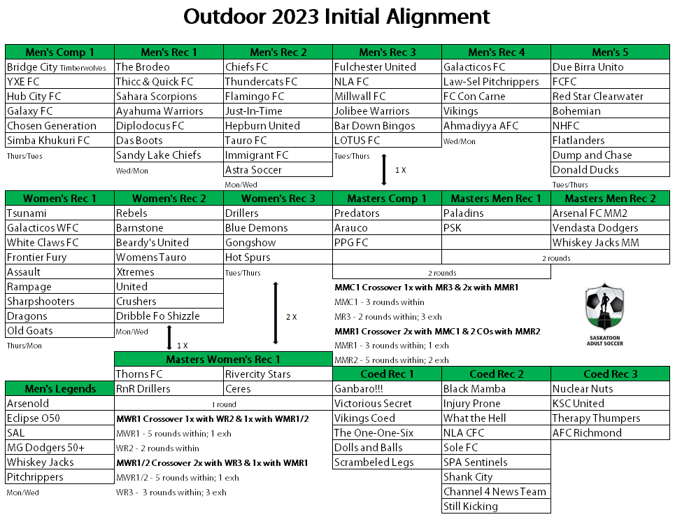 Saskatoon Adult Soccer has the right to place any team in any division they deem appropriate and may do so at any time.