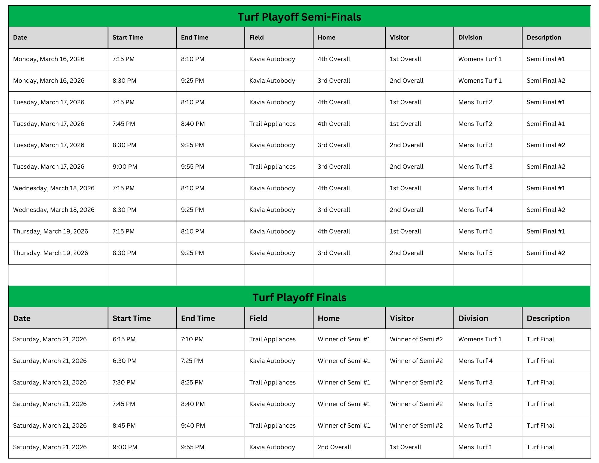 Indoor Playoff Schedules
